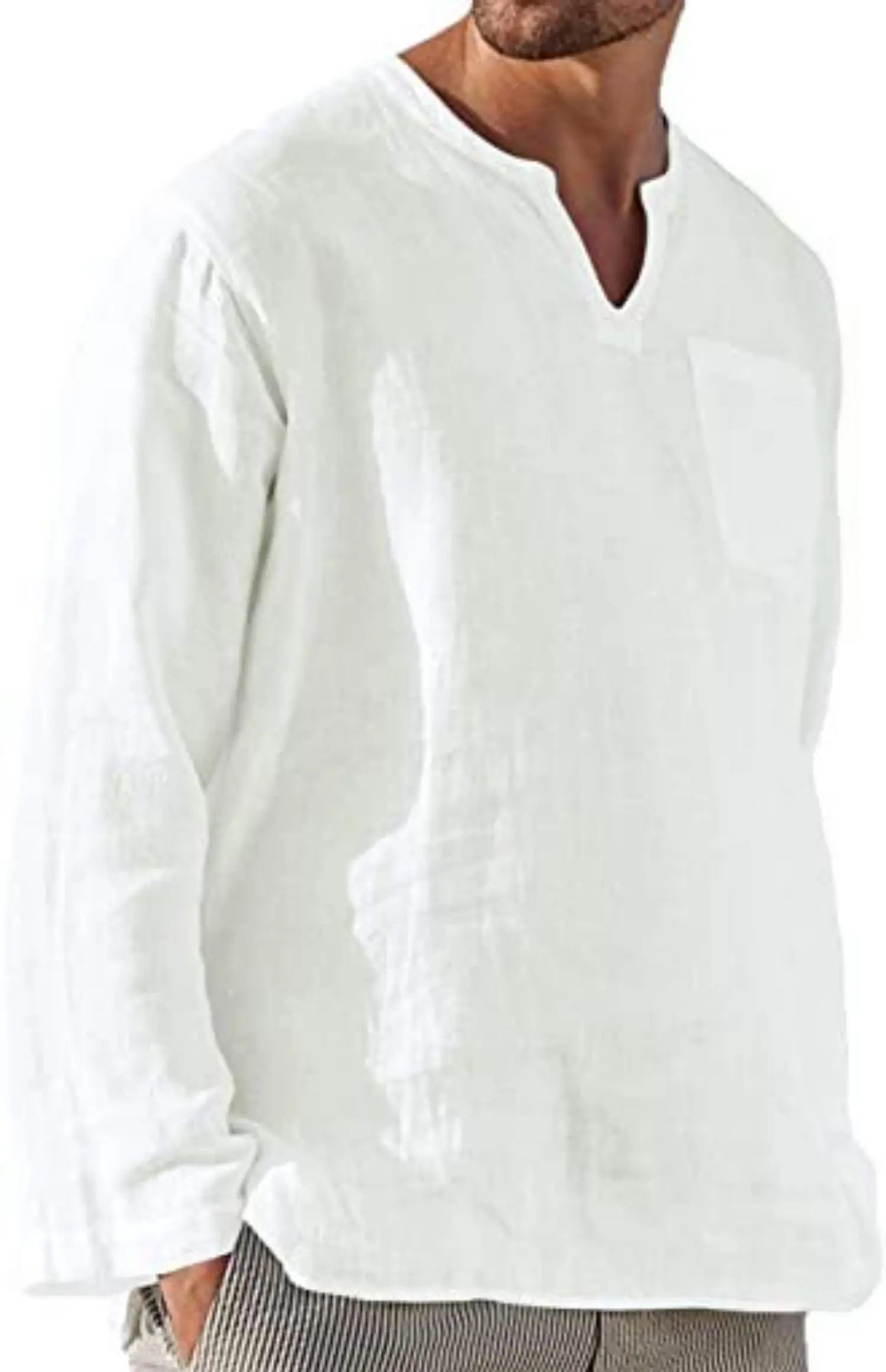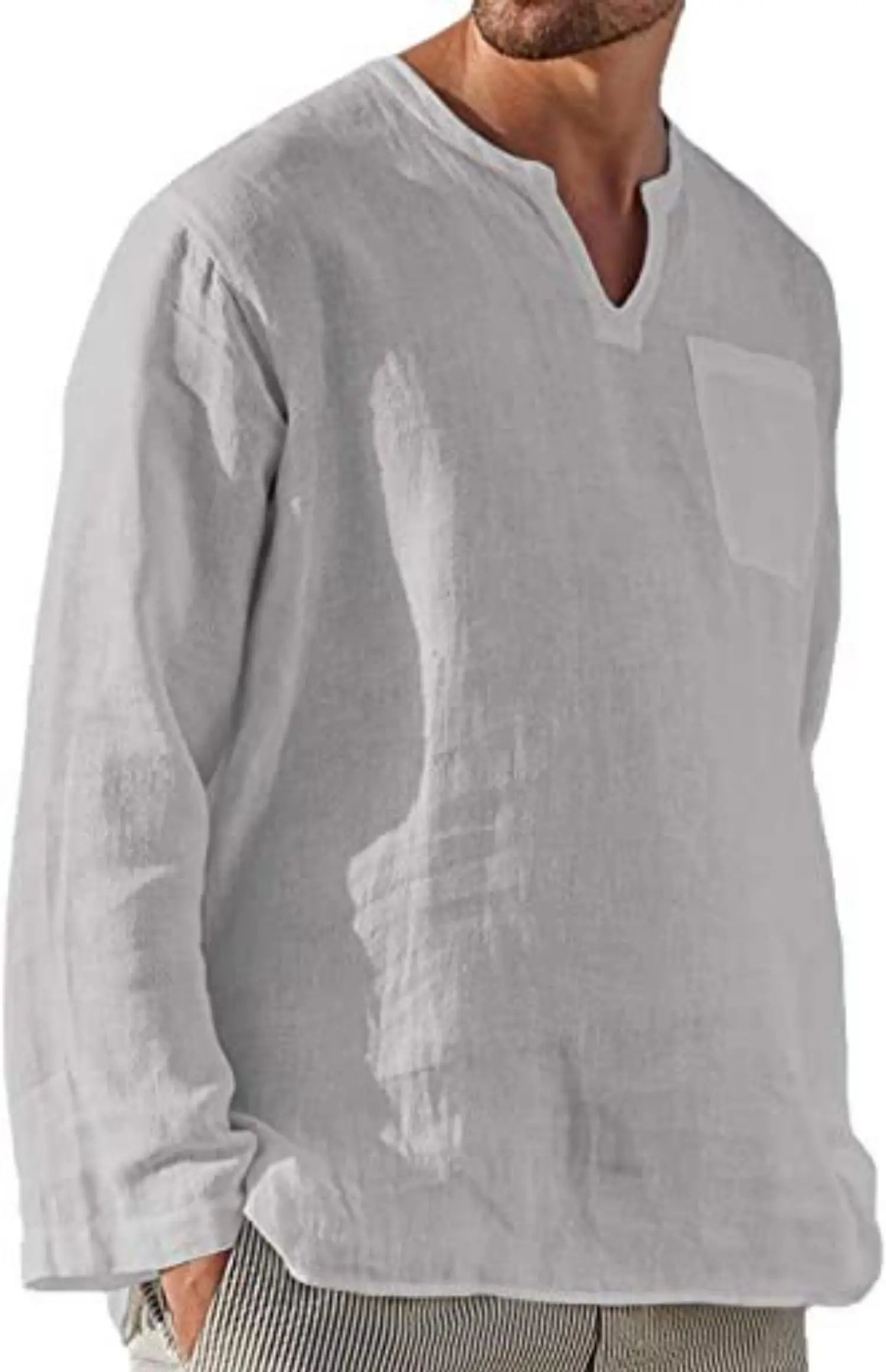 Casual Men's Long Sve V-Ne Linen irt Beach Independent Station Sle Slim Fit T-irt Youth Trend Spring Collection